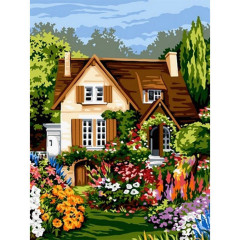 Картина по номер. на холсті 30*40см Бебилон Турбо VK094 Будинок посеред квітів