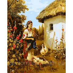 Картина по номер. на холсті 40*50см Бебилон Турбо VP844 Девушка и гуси