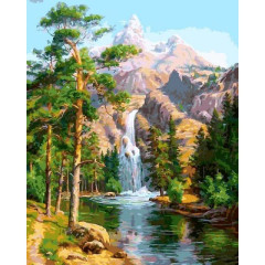 Картина забарвлення за номерами Babylon Водоспад у сосновому лісі