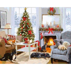 Картина по номер. на холсті 40*50см Бебилон Турбо VP998 Рождественское утро у камина