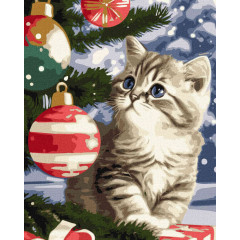 Картина за номерами - Кошеня під ялинкою. Зроблено в Україні.