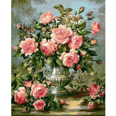 У набір картини-розмальовки за номерами Mariposa "Троянди у срібній вазі входить: