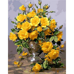 Картина по номер. на холсті 40*50см Mariposa Q1118 Жовті троянди у срібній вазі