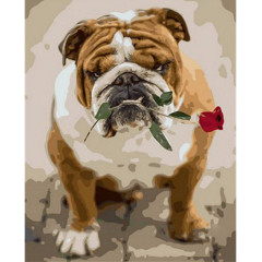Картина «Англійський бульдог із трояндою» розфарбовується без змішування фарб.