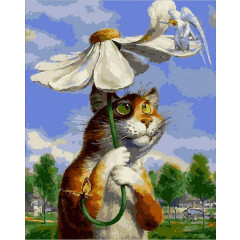 • Картина розмальовка за номерами Q2076 Кіт з ромашкою художник Володимир Румянцев.