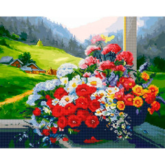 Картина розфарбування по номерах на полотні з елементами мозаїки BrushMe Букет на вікні