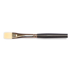 Кисть плоска з волоса синтетики. Подовжена виставка робочої частини. Такий пензлем наносять широкі рівні мазки, нею добре працювати на великих ділянках полотна. Завдяки густоті і довжині волосся, кисть утримує багато фарби.