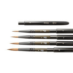 Пензлі OCEAN ROSA круглої форми виготовлені з натурального волосу соболя та мають особливу конструкцію TRAVEL BRUSH. Натуральний волос соболя ідеально тримає кінчик та форму пучка, чудово вбирає та віддає воду. Завдяки формі та властивостям волосу пензлі OCEAN є універсальними для усіх технік акварельного живопису. За якістю та властивостями пензлі з волосу соболя не поступаються колонку.