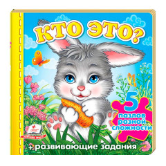 На яскравих сторінках книги-пазла Хто це? малюків чекають лисеня, вовченя, ведмедик, зайчик, їжачок і інші добрі звірята, а також веселі віршики та цікаві завдання на уважність, кмітливість і рахунок. Забавні звірятка стануть справжніми друзями дітвори, перенесуть маленького читача в чарівний книжковий світ і розкажуть про себе багато цікавого.