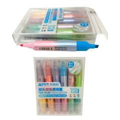Маркери текстові набір 6 шт, 12 кольорів Aodemei двосторонні стандарт та тонкий 6217