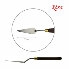 Високоеластичний мастихін, з нержавіючої сталі, з дерев'яною лакованою ручкою і паяним лезом, що, гарантує його довговічність.