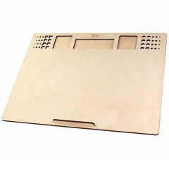 Настільний мольберт-планшет 500141311 з фанери підходить для паперу форматів до В3, має розмір основи 55х2,5х48 см та ручку для зручності перенесення та транспортування.