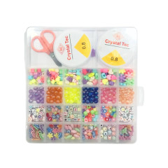Всі намистини в футлярі виконані поєднуються один з одним. Допоможе дітям поліпшити координацію рук і очей, творчі здібності тощо. А також допомогти їм у виготовленні різних намист, браслетів і колець.
