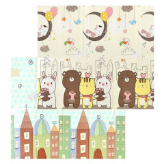 Килимок можна використовувати з двох сторін. Вся кольорова гама та розташування елементів на килимку підібрані таким чином, щоб Ваша дитина змогла розвивати тактильне сприйняття, творчі навички та вчилась розпізнавати кольори й відтінки.