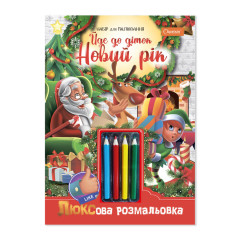 Набір для творчості Апельсин ЛЮКСова розмальовка з кольоровими олівцями А4 НТ-19 Йде до діток Новий рік