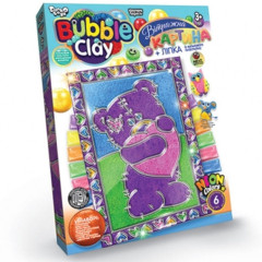 Набір для творчості DankoToys DT BBC-02-04 пластилін Bubble Clay 6шт + Вітражна картина Ведмежа