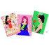 В комплекті 3 листа з дівчатами в образі танцівниць фламенко, сукні яких необхідно приготувати до виступу. За допомогою вишивки та різнокольорових стрічок одяг танцівниць кардинально зміниться.