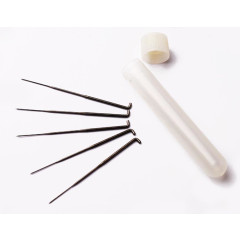 Англійські голки для валяння виготовлені із загартованої сталі і мають спеціальні загини, що сприяють зручному валяння. Вони є досить пружними і не гнуться в роботі. У кожному наборі міститься 5 голок одного розміру.