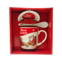 Набір Новорічний керамічний Чашка 350мл, ложечка та блюдечко HK-614-B