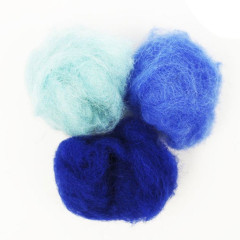 Вовна для валяння НАБІР кардочесаної Сині відтінки 3 кол.*10 г Rosa Talent 1203367