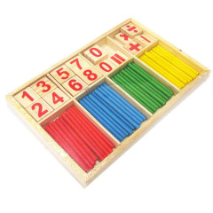 У набір входить: рахункові різнокольорові палички, цифри і знаки.