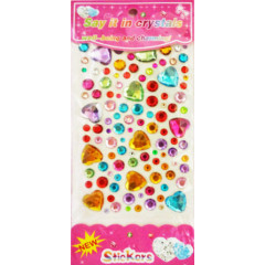 • Наклейки дитячі Стрази 100 * 160мм сердечка в асортименті 8192