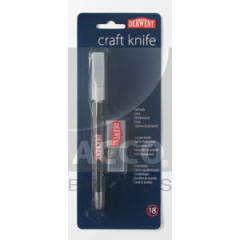 Пластиковий блістер. Вміст: макетний ніж, 6 змінних лез. Ніж для натачіванія олівців і нарізування паперу. Легка ручка. Будьте обережні і використовуйте леза з підвищеним вніманіем.Проізводітель: Derwent (Дервент) Великобританія