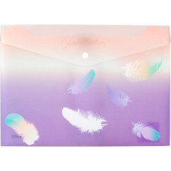 Папка на кнопці Axent Colourful Feather-02 1432-92-A виконана з напівпрозорого пластика з блискітками. Ніжний колір в комбінації з шіммери створить святковий настрій і налаштує на продуктивну роботу. Закривається на кнопку і надійно зберігає документи від забруднень і застрягання.