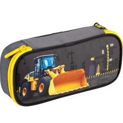 Пенал Kite K18-662-5 виконаний з міцного поліестеру сірого кольору із зображенням екскаватора.