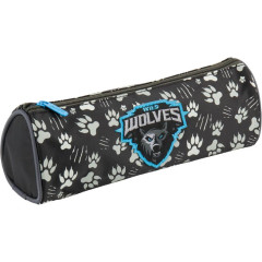 Пенал Kite K18-667-1 виконаний з міцного поліестеру чорного кольору із зображенням вовка і вовчих слідів.