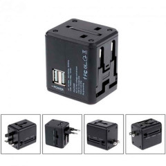 Перехідник для мандрівок Usams US-CC044 T2 Dual USB (4в1 US/AU/EU/UK) Black CC44TC01