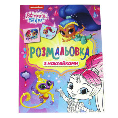 Розфарбовування Shimmer and Shine з наклейками. На кожній сторінці приклей відповідну наклейку і розфарбуй картинку за зразком або як тобі подобається. Решта наклейки приклеюють на свої блокноти, зошити, листівки - куди завгодно!