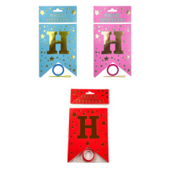 Розтяжка святкова Party Goods Happy Birthday довжина 3,5м Прапорці з зірками, мікс 10256