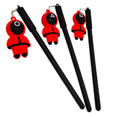 Гелева ручка з насадкою Кальмар-брелок Squid game, пише синім №9888