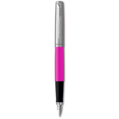 Parker (Паркер) JOTTER Plastic Pink FP - яскравий дизайн пір'яний ручки в ретро стилістиці з колекції JOTTER Originals. Витончена манера письма на кожен день зі сталевим пером. Лінійка Jotter (Джотер) завдяки прекрасній ціновій політиці, стане ідеальним варіантом для людей, які багато і часто пишуть, наприклад, для учнів. Великий асортимент барвистих дизайнів задовольнить будь-які естетичні уподобання. Надміцний корпус для ручки-пера JOTTER Originals Magenta виготовлений з глянці