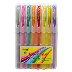 Гелеві ручки First набір 8шт з блискітками F919-8/205-8