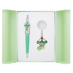 У наборі кулькова ручка і брелок.