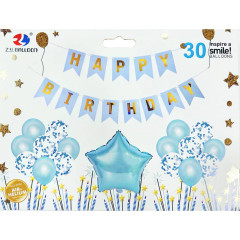 Повітряна кулька ZYBalloon набір 17шт. різного розміру та розтяжка, Зірка блакитна 10126