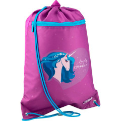 Сумка для взуття Lovely Sophie K19-601M-13 виготовлена ​​з поліестеру фіолетового кольору із зображенням чарівного єдинорога. Дівчаткам 6-8 років сподобається носити в ній речі на уроки фізкультури і спортивні секції. Змінний взуття, складена в легку і міцну сумку-мішок, чи не буде бруднити рюкзак. Сумку також можна носити за спиною як невеликий рюкзак.