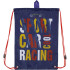 Сумка для взуття виконана з міцного поліестеру темно-синього кольору з написом.