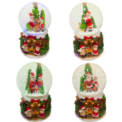 Сувенір Новорічна куля зі снігом d-4,5 см Дід Мороз та діти на каміні, що світиться, асорті LK-2545-2