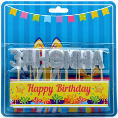 Свічки-набір для торта Україна 'З Днем Народження' (укр) срібло