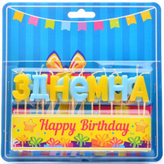 Свічки-набір для торта Україна 'З Днем Народження' (укр) жовто-блакитні