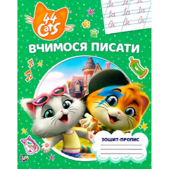Зошит-пропис Вчимося писати "44 Cats" Зошит-пропис розроблена з урахуванням рекомендацій педагогів і дитячих психологів за принципом «від простого до складного». Вчитися писати простіше і веселіше з героями улюблених мультфільмів!