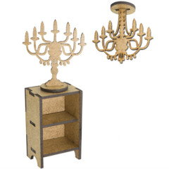 • У наборі: тумбочка - 65х40х30 мм, свічник - 60х55х20 мм, люстра - 50х55х25 мм