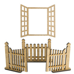 • У наборі: вікно - 50х68х10 мм, паркан - 50х68х10 мм, ворота - 60х68х10 мм